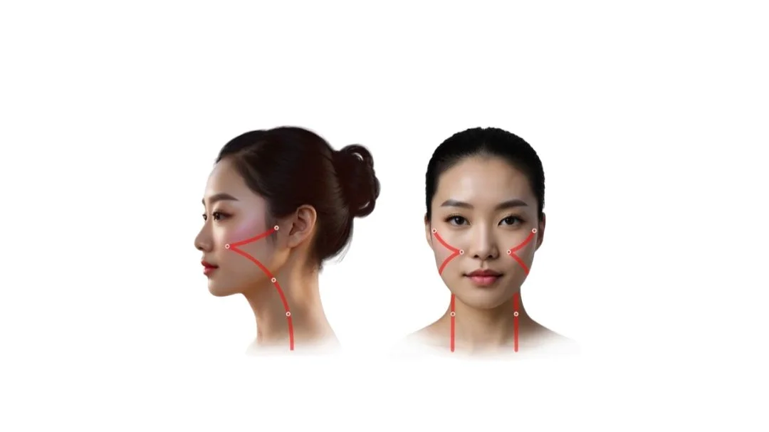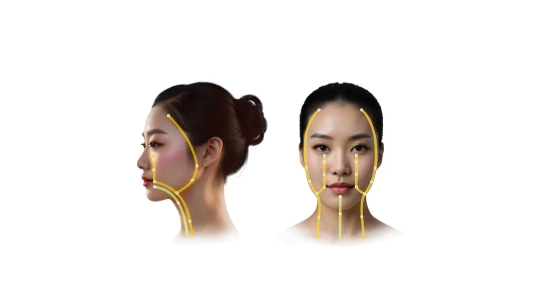“These gentle curves along the cheeks represent the Small and Large Intestine meridians, they help with both physical and emotional detoxification. Releasing stagnation here clears the skin and lightens emotional heaviness.”